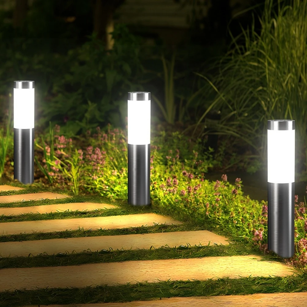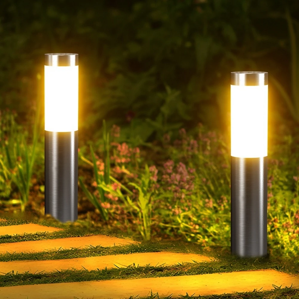 Home & Garden Hub™ Solar Stainless Steel LED Modern Pathway Lights Upgraded Courtyard Outdoor Garden Cylindrical Lawn Light Outside Walkway Decor