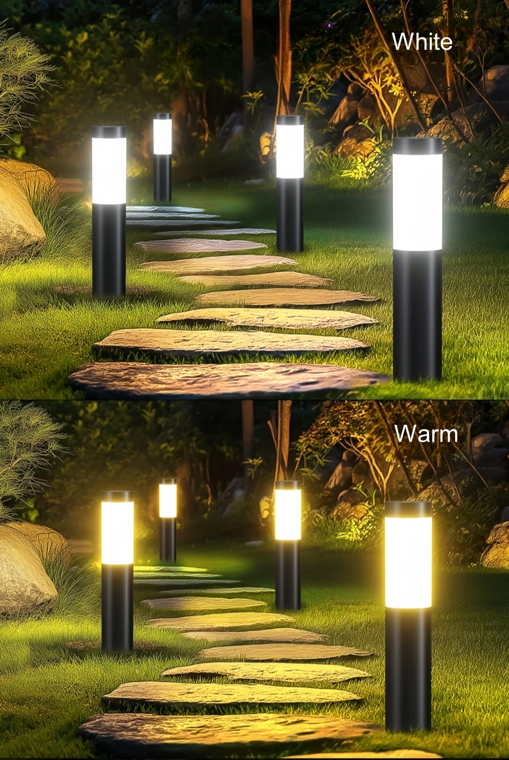• No wires or electricity required: The solar bollard lights are runs completely on solar power, no wires or electricity required. Quickly install by pushing the solar pathway lights into the ground.